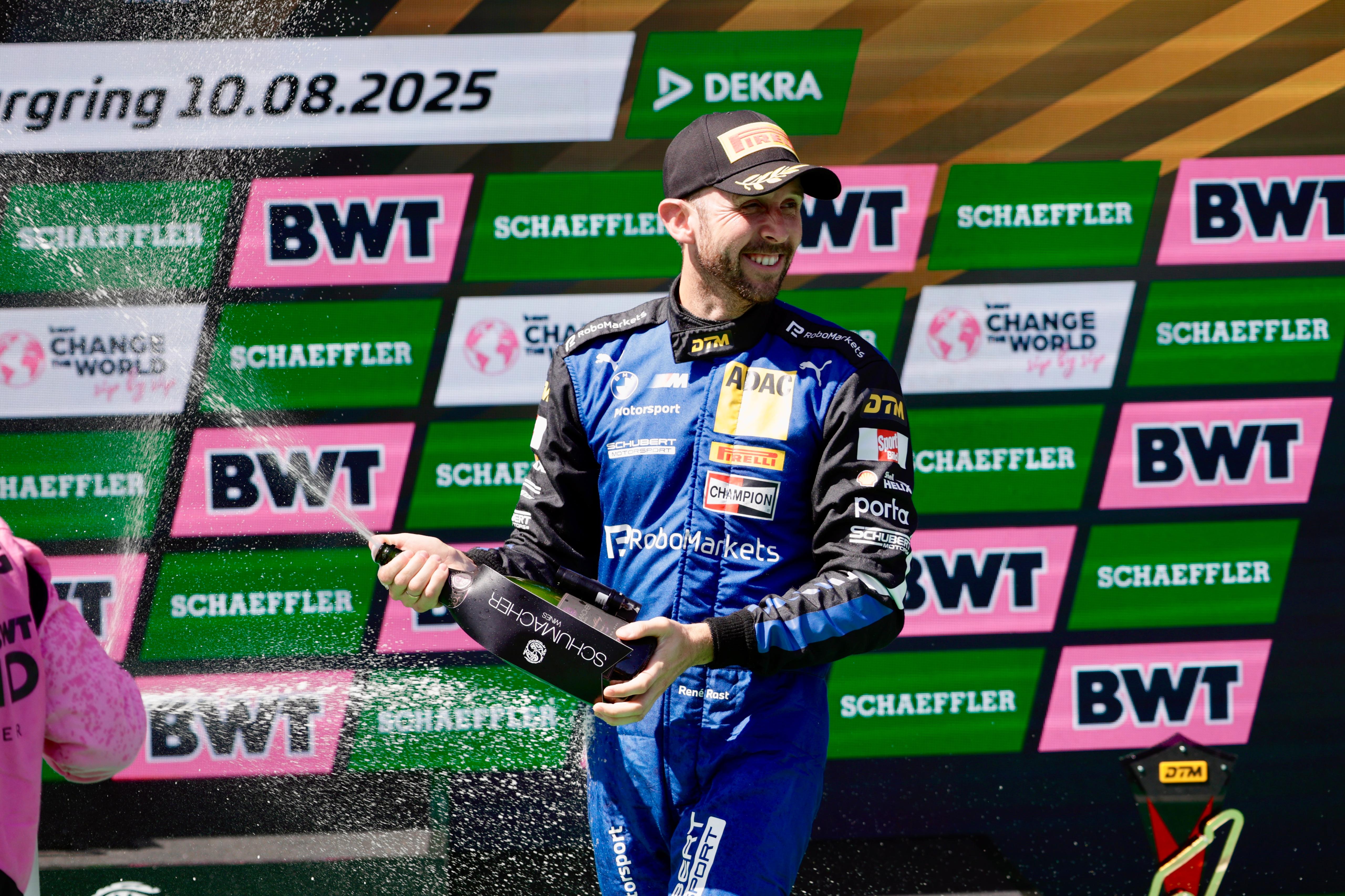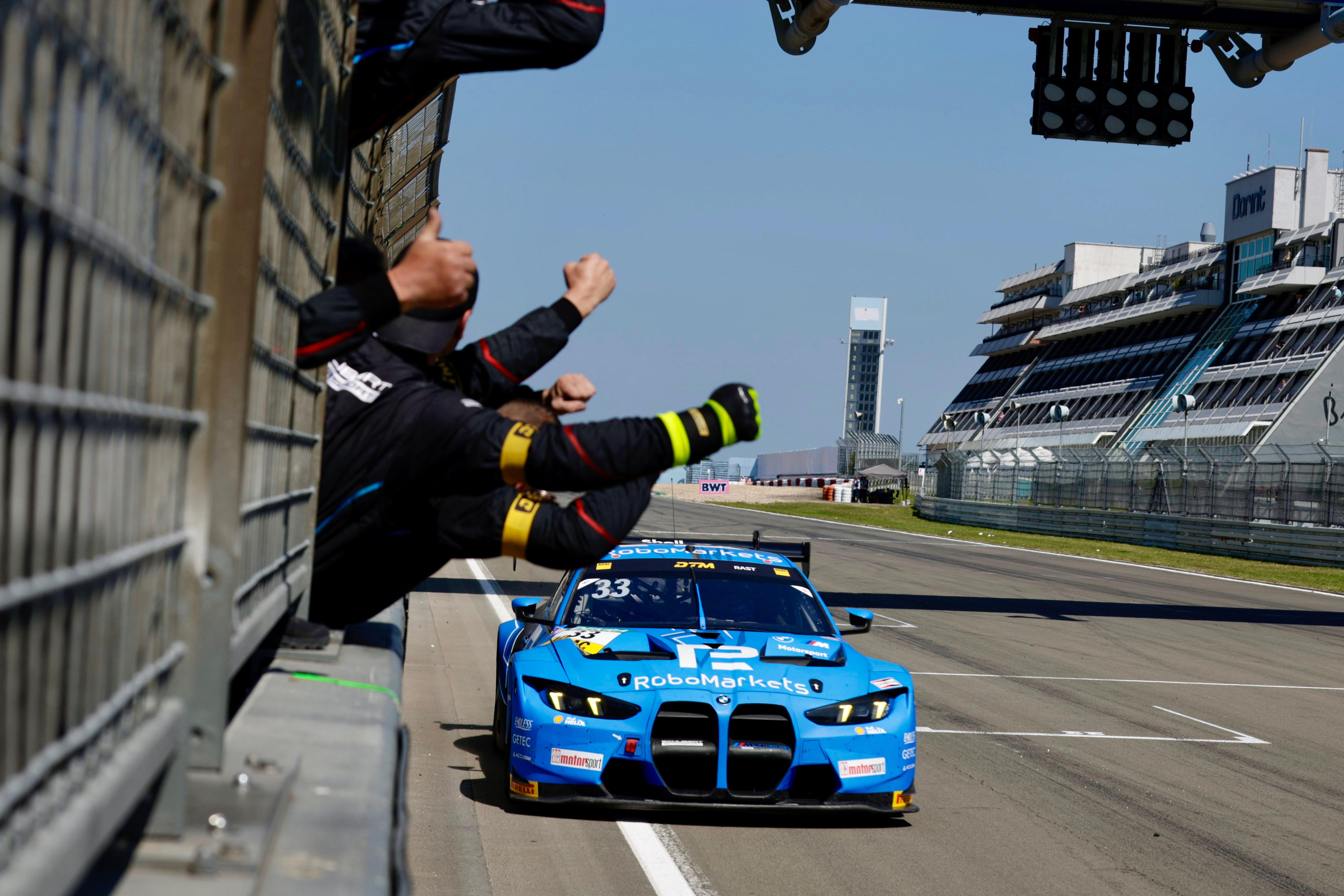 Nürburgring. Zweiter Saisonsieg, 30. Sieg der DTM-Karriere: René Rast (GER) erlebte am fünften Rennwochenende der Saison auf dem Nürburgring (GER) einen großartigen Sonntag. Im #33 RoboMarkets BMW M4 GT3 EVO stürmte er vom sechsten Startplatz an die Spitze und meldet sich dank der Punkte für den ersten Platz im Titelrennen zurück. Marco Wittmann (GER) zeigte bereits am Samstag als Fünfter im #11 Schaeffler BMW M4 GT3 EVO eine großartige Aufholjagd. Am Sonntag wurde er von Startplatz sieben Zweiter und komplettierte damit den Zweifachsieg für Schubert Motorsport.